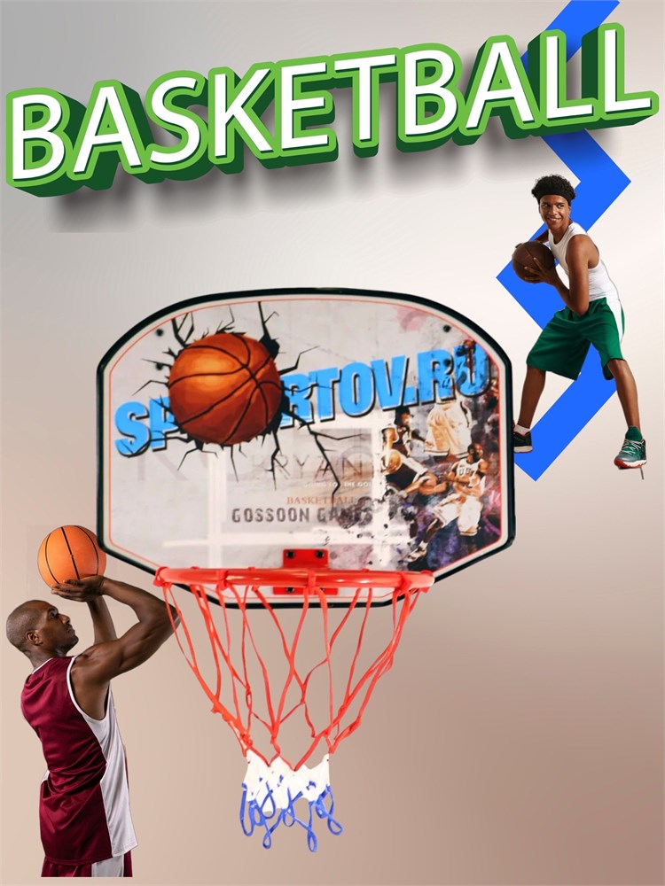 Комплектация включает в себя баскетбольный щит, кольцо, сетку, насос и мяч.