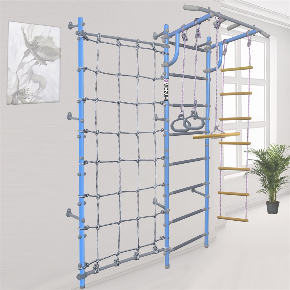 Шведская стенка Midzumi Hotaru Kabe (небесная лазурь) - это многофункциональный комплекс для дома, который поможет создать игровую площадку, которая не только развлечет вашего ребенка, но и сделает физические упражнения интересными.