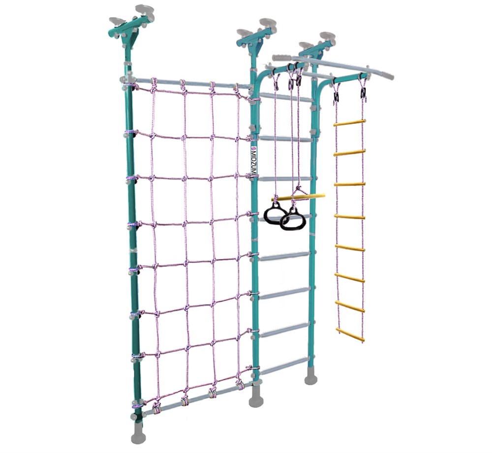 — Комплектация: гимнастические кольца, тарзанка, веревочная лестница, канатный лаз