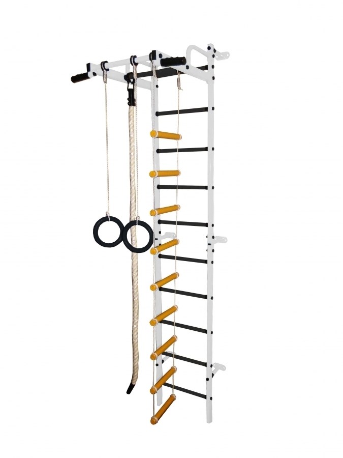 Серия: Classic Formula Страна изготовитель: Россия Тип комплекса: пристенный Тип установки: к стене Комплектация: кольца, канат, лестница верёвочная Размер Д(Г)хШхВ: 73х39,5х226 см Занимаемая площадь: 1 м² Ширина турника: 65 см Регулировка турника по высоте: нет Диаметр трубы стойки: 4х2 см Толщина металла стоек: 2 см Тип перекладин: обрезиненные Диаметр перекладины: 3 см с учетом обрезиненного покрытия Длина перекладины: 39 см Материал: металл, ПВХ, дерево, пластик Тип окраски: порошковое покрытие Максимальная нагрузка на металлическую конструкцию: 150 кг Максимальная нагрузка на турник: 150 кг Максимальная нагрузка на навесное оборудование: 80 кг Тип упаковки: картонная коробка, запаянная в плотный полиэтилен Коробка: 115х25х14 см, 16,95 кг. Возрастная категория: 3+ Регулировка навесного оборудования по высоте: да