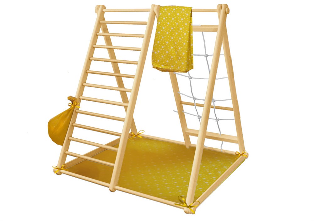 Комплектация: в комплект входят лестница с сеткой, палатка, коврик и сумка для игрушек. Это позволяет ребенку не только заниматься спортом, но и играть в различные игры, развивая фантазию и координацию движений.