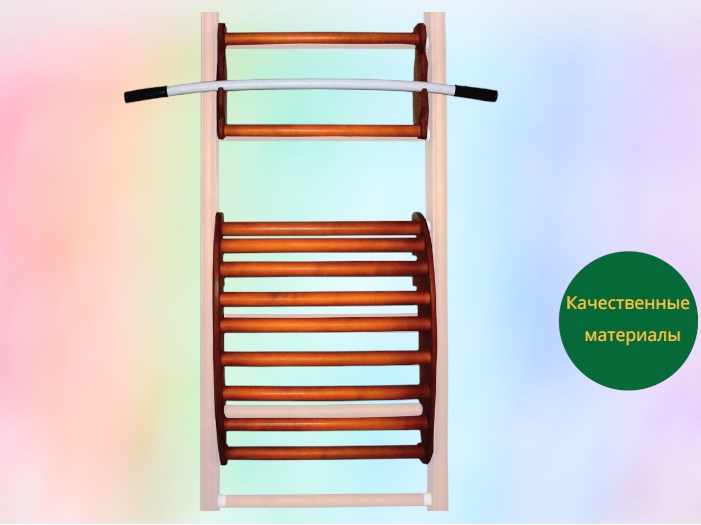 Крепление: Турник и тренажер для спины могут устанавливаться на деревянную шведскую стенку на нужной высоте. Для напольных занятий тренажер также может быть установлен на ровную поверхность пола.(изображение на отдельном фото)