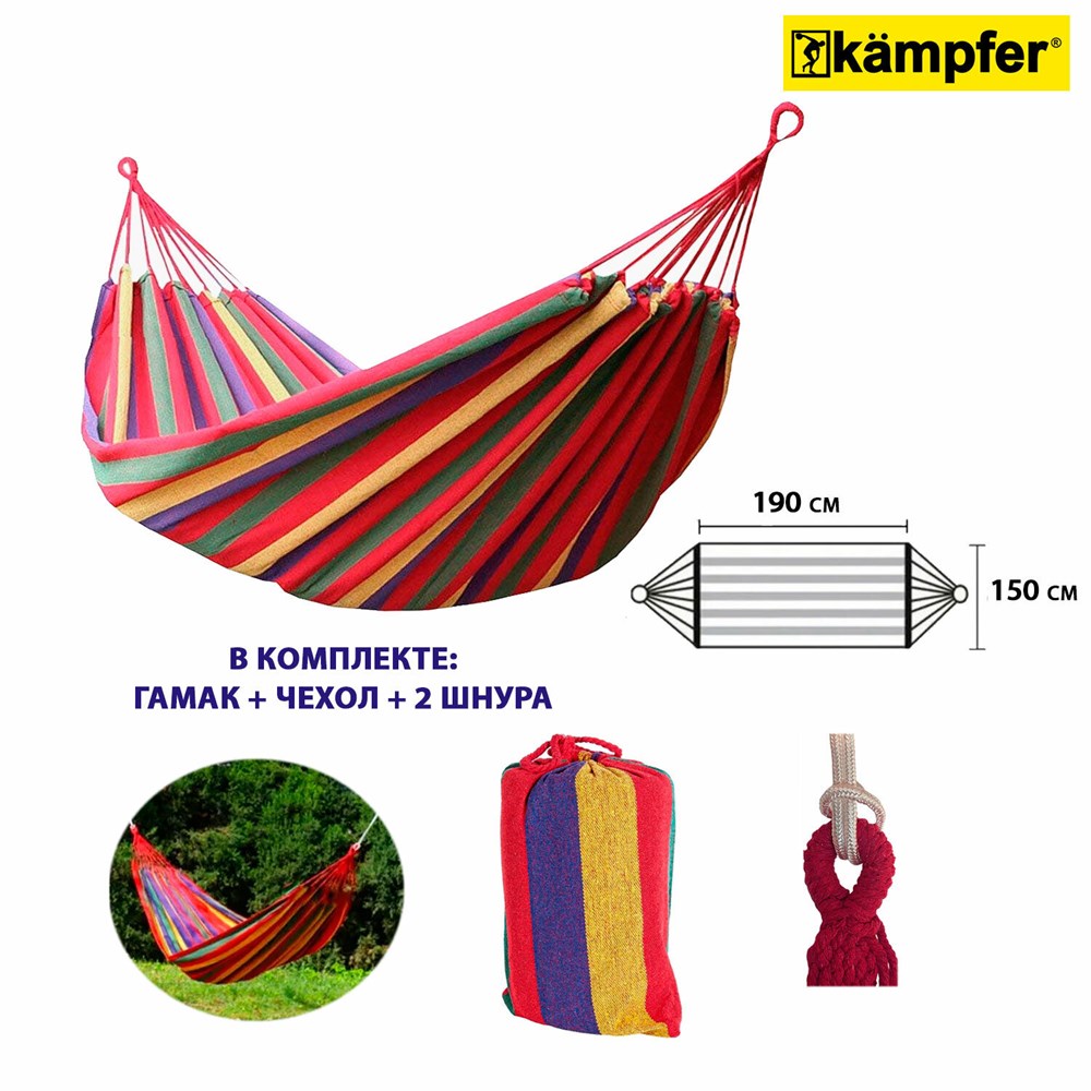 Гамак подвесной Kampfer Summer Rest - это незаменимый помощник для отдыха на природе. Он предназначен для сна и отдыха в тени деревьев, а также для пикников и прогулок.