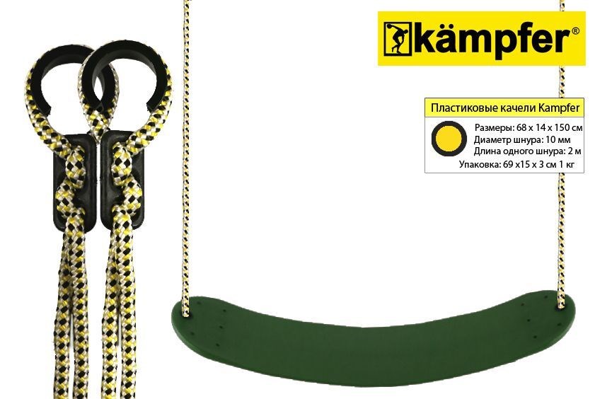 Качели Kemfer предназначены для использования как дома, так и на улице, поэтому прекрасно подойдут к домашним и уличным спортивным комплексам, а также к детским площадкам всех модификаций. Это облегченный гибкий вариант классических качелей наиболее безопасный для детей, а также удобный и компактный в переноске и хранении.Детские гибкие качели можно подвесить на любую горизонтальную перекладину или прочную ветку. Гибкое и прочное сидение изготовлено из современного материала и снабжено водостойким полиамидным шнуром, благодаря чему качели обладают повышенной износостойкостью и позволяют выдерживать максимальную нагрузку до 100 кг. Использование таких качелей подарит отличное настроение и восторг пользователям любого возраста!Качественные материалы изготовления надолго сохраняют яркость цвета и рассчитаны на любые погодные условия, устойчивы к попаданию прямых солнечных лучей, морозу, дождю и перепадам температур, прослужат долго даже при самом интенсивном использовании.