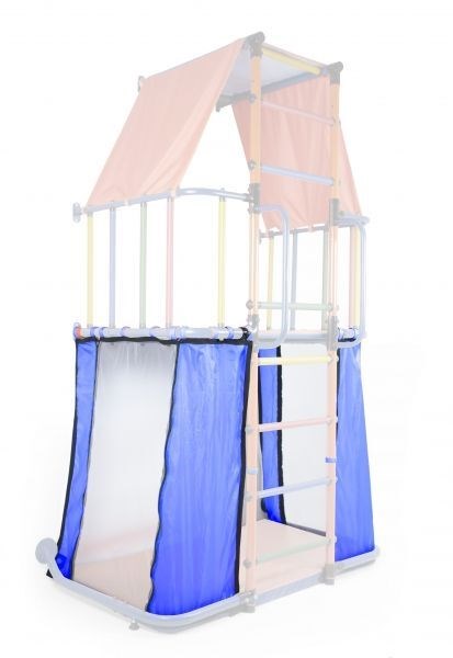 Дополнительный модуль-домик для для Индиго это дополнительное оборудование, которое крепится сбоку к домашнему спортивному комплексу Индиго. Дети любят играть в путешественников или просто примерять на себя роль взрослых. А этот модуль создаст закрытую игровую зону: вот и всё, что нужно для воссоздания игры в секретный штаб, домик или дочки-матери.