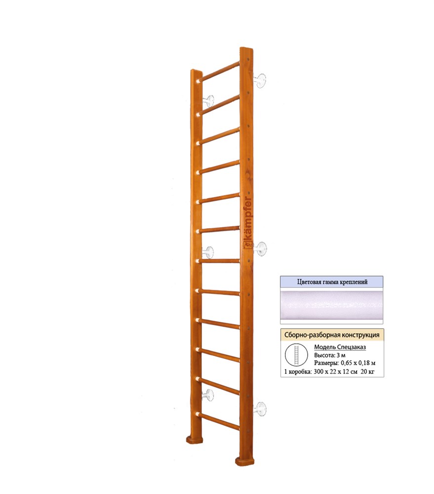Шведская стенка Kampfer Classic Wall (№2 Ореховый Высота 3 м белый)