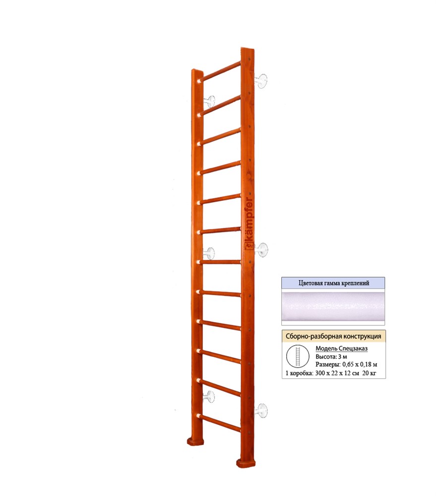 Шведская стенка Kampfer Classic Wall (№4 Вишневый Высота 3 м белый)