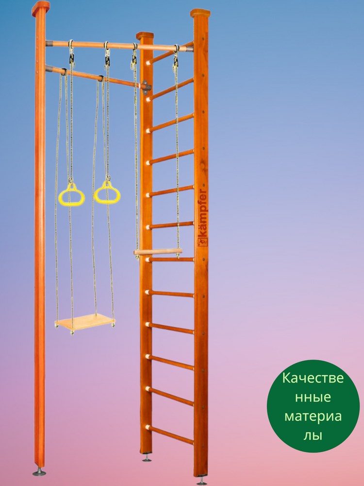 Шведская стенка Kemfer Compact - это домашний спортивный комплекс, который станет отличным выбором для детей от 3 до 7 лет. Изготовлен из натурального дерева, что обеспечивает безопасность и долговечность. Все края деталей немного скруглены, что делает его еще более безопасным для ребенка.