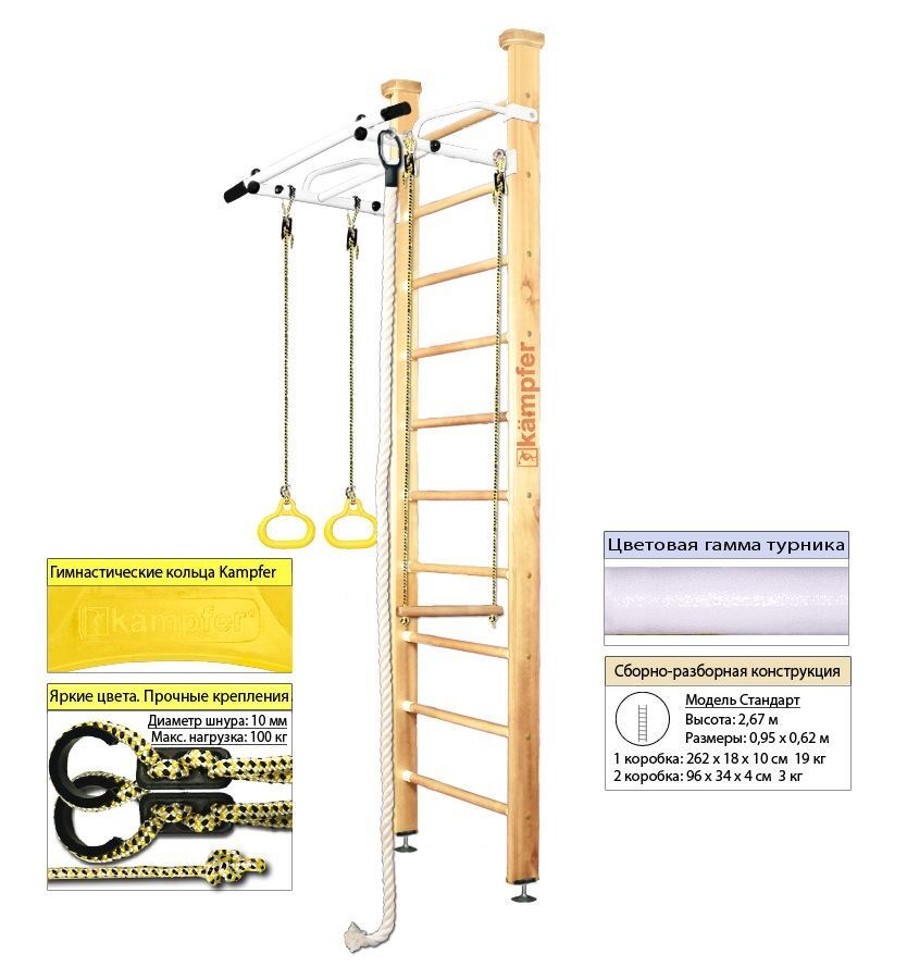 Шведская стенка Kemfer Helena Ceiling (№1 Натуральный Стандарт белый турник)