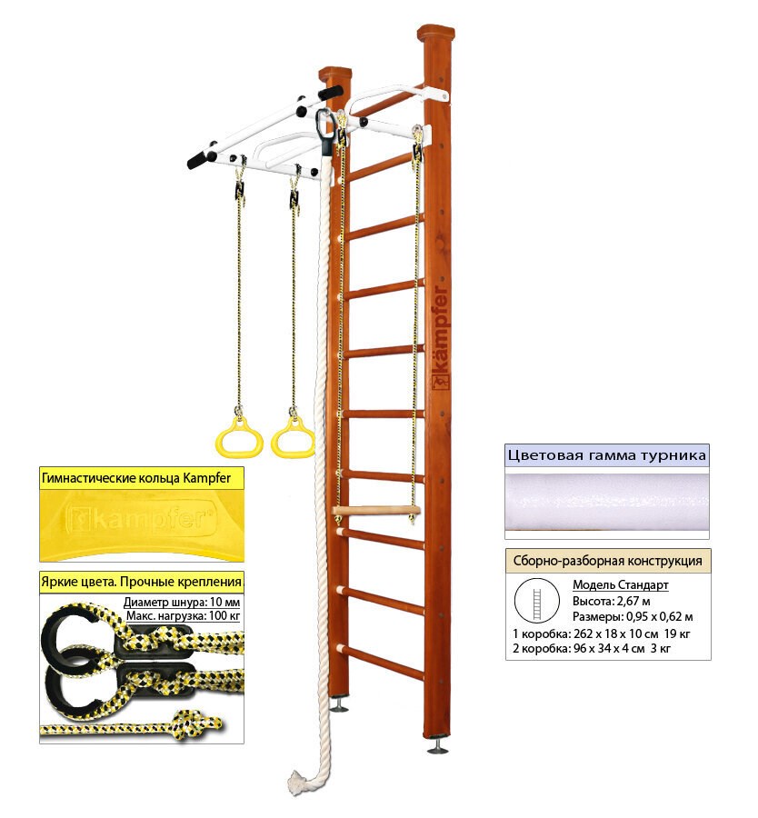 Шведская стенка Kampfer Helena Ceiling (№4 Вишневый Стандарт белый турник)