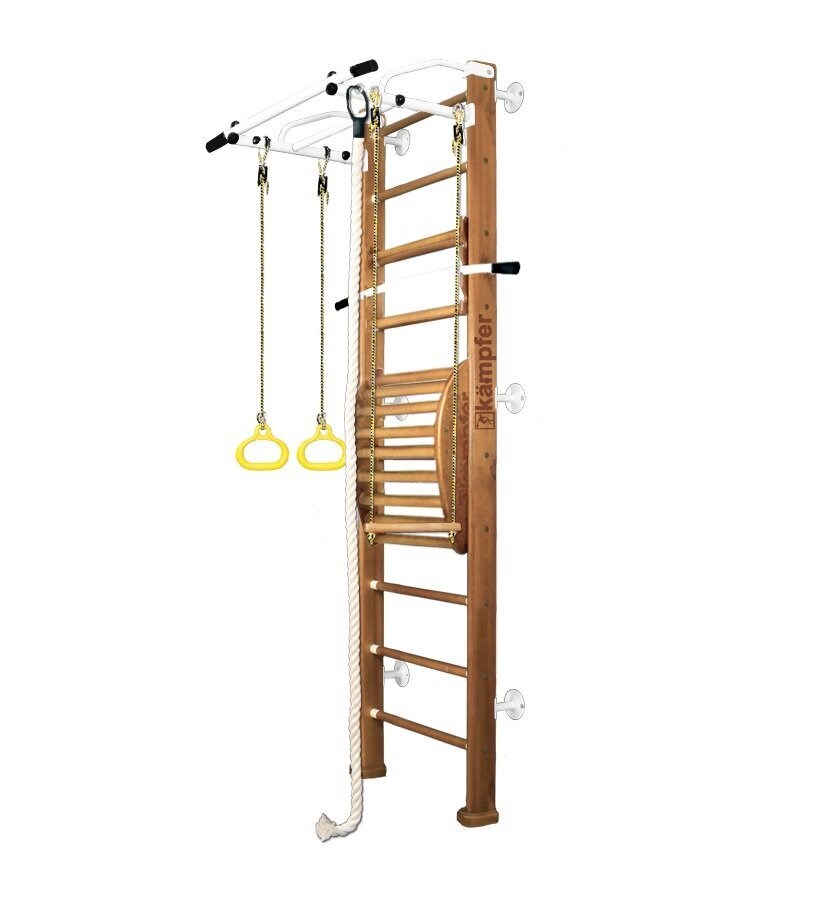 Шведская стенка Kemfer Helena Maxi Wall - это деревянный детский спортивный комплекс, который станет отличным тренажером для спины вашего ребенка. Kemfer - это шведская компания, которая зарекомендовала себя как производитель качественных и надежных спортивных товаров.