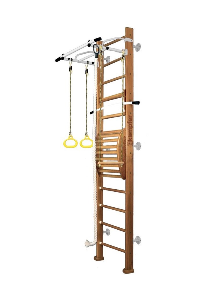 Шведская стенка Kemfer Helena Maxi Wall (№2 Ореховый Высота 3 м белый антик турник)