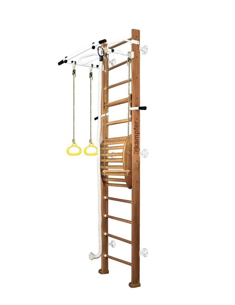 Шведская стенка Kemfer Helena Maxi Wall (№2 Ореховый Высота 3 м белый турник)