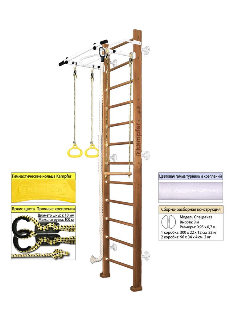 Шведская стенка Kampfer Helena Wall (№2 Ореховый Высота 3 м белый турник)