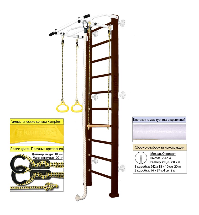 Шведская стенка Kemfer Helena Wall (№5 Шоколадный Стандарт белый турник)