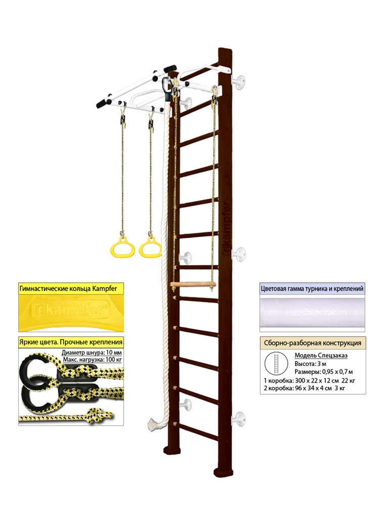 Шведская стенка Kemfer Helena Wall (№5 Шоколадный Высота 3 м белый турник)