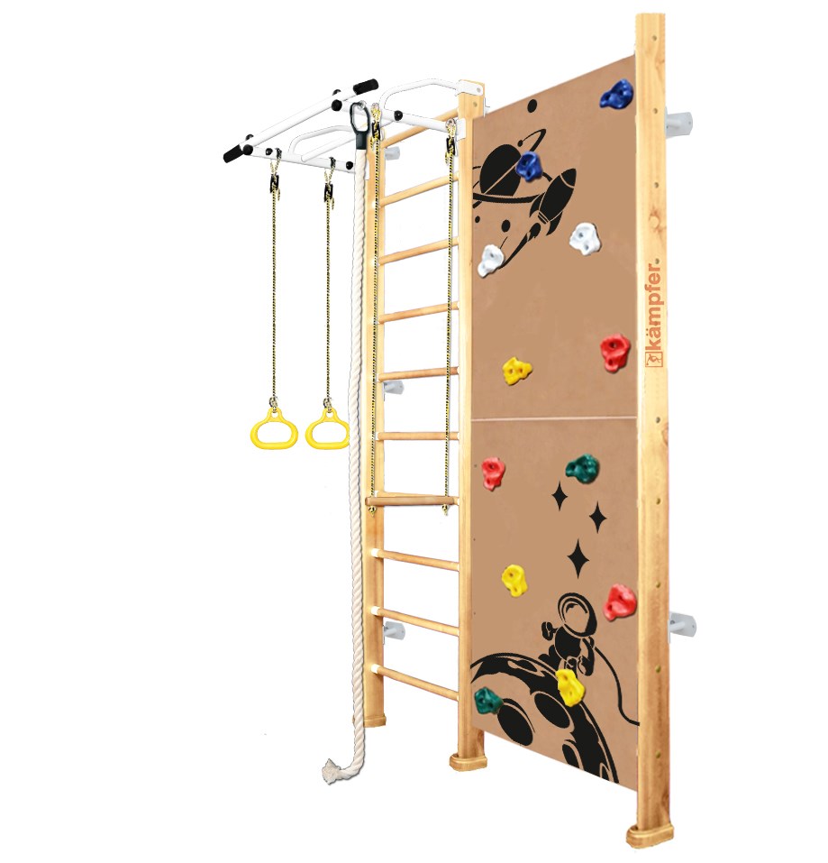 Шведская стенка Kemfer Jungle Wall Boy [№1 натуральный Стандарт белый турник]