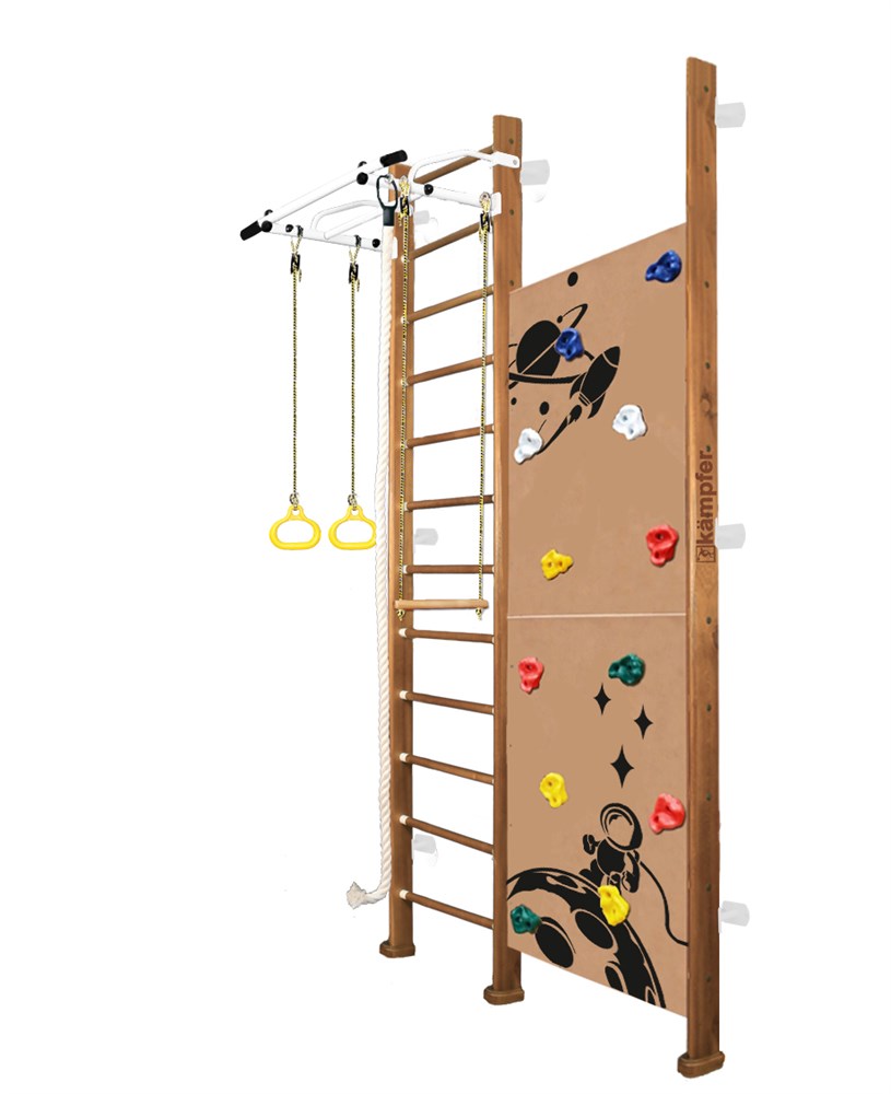 Шведская стенка Kemfer Jungle Wall Boy [№2 Ореховый Высота 3 м белый турник]