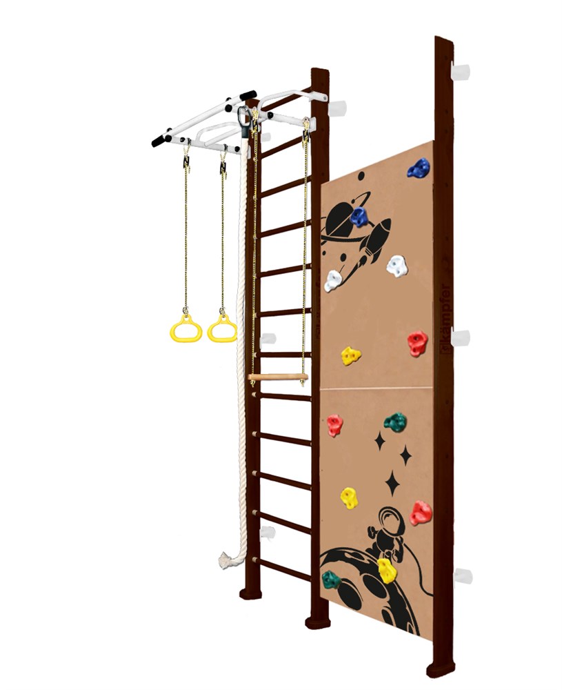 Шведская стенка Kemfer Jungle Wall Boy [№5 Шоколадный Высота 3 м белый турник]