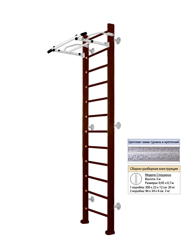 Шведская стенка Kemfer Swedish Wall [№5 Шоколадный Высота 3 м белый антик турник]