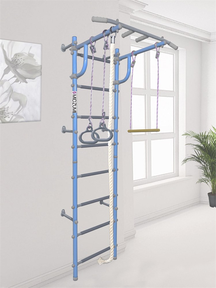 Шведская стенка Midzumi Hoshi Kabe выполнена в небесной лазури, что делает ее привлекательной для детей и добавляет ощущение свежести в интерьер.
