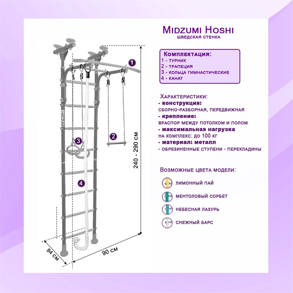 Ваш ребенок готов к приключениям? В таком случае, время организовать спортивный уголок у себя дома. Midzumi Hoshi идеально подходит для юных непосед. Домашний комплекс можно считать прямой и долговременной инвестицией в здоровье детей, потому как уровень физического развития принято считать достоверным признаком их здоровья. Польза от такого комплекса не только для детей, но и для других членов семьи, так как турник могут освоить и родители.