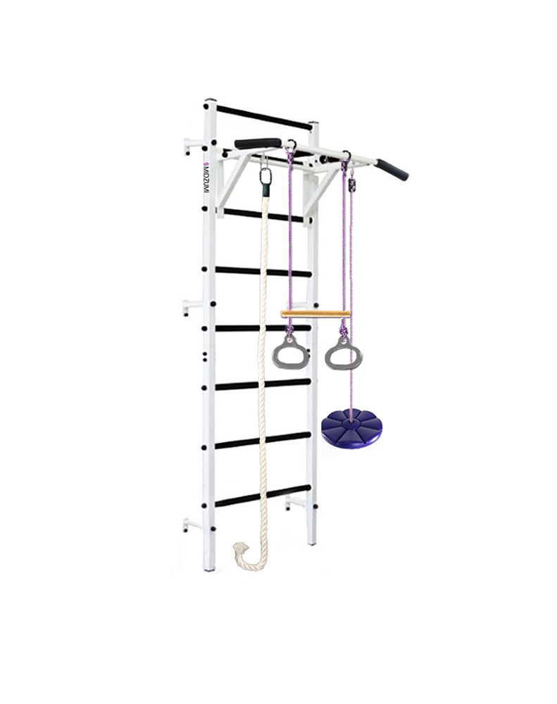 Шведская стенка Midzumi Michi - функциональный комплекс для всей семьи. Нейтральный белый цвет придется по вкусу и мужчинам, и женщинам, и детям. Предусмотрены дополнительные крепления для аксессуаров и снарядов (боксерская груша, TRX и пр.).