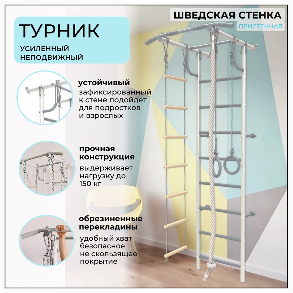 Усиленный неподвижный турник - крепится напрямую к стене, что повышает его устойчивость и несущую способность.