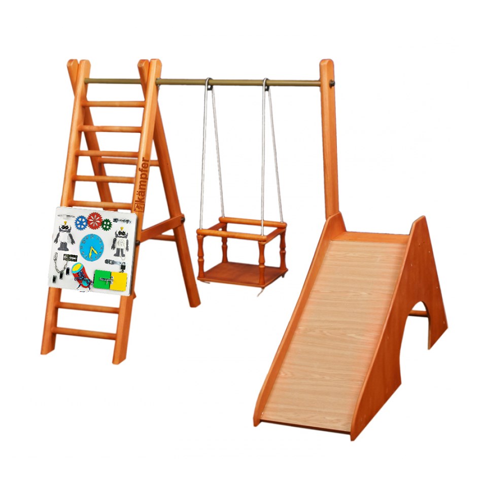 Домашний спортивный комплекс Kemfer Kitty Busyboard - станет прекрасным подарком и самой главной игрушкой ребенка. Модель не только развивает малыша физически, но и является интеллектуальным помощником в развитии ребенка. А также является абсолютно безопасной. С помощью креплений педагогическая разработка (бизиборд) надежно крепится к ступеням и создает внушительную преграду на пути малыша к лестнице. Помимо преграды педагогическая разработка (бизиборд) совместно со шведской стенкой в 800 раз увеличит адаптацию ребенка в мире бытовых предметов. Таким образом, данную модель могут использовать несколько детей одновременно. Кататься на качелях, скатываться с горки и познавать мир с помощью бизиборда. Обучаться и развивать свои навыки физически или интеллектуально.