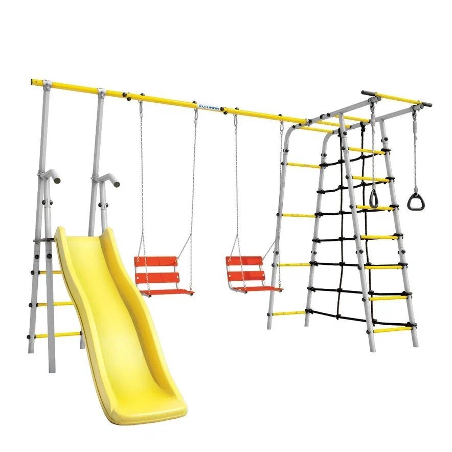 Спортивно-игровой комплекс ROMANA Богатырь Плюс-2 103.12.06-02 серый/желтый с двумя качелями [серый/желтый + Качели цепные 1.Д-26.02 + Качели цепные 1.Д-26.02]