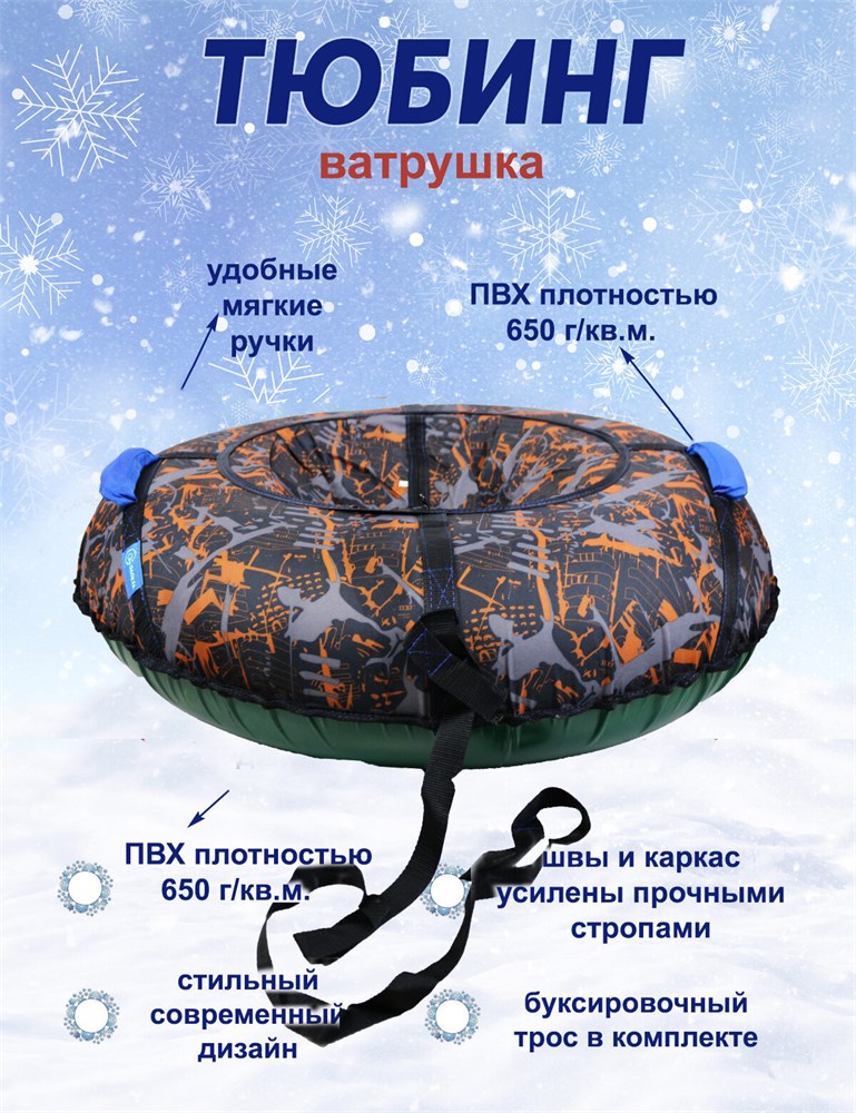 Внимание! Насос для тюбинга в комплектацию не входит и приобретается отдельно. Камеру можно накачать любым автомобильным насосом. Цветовая гамма тюбинга может немного отличаться от представленной на изображении.