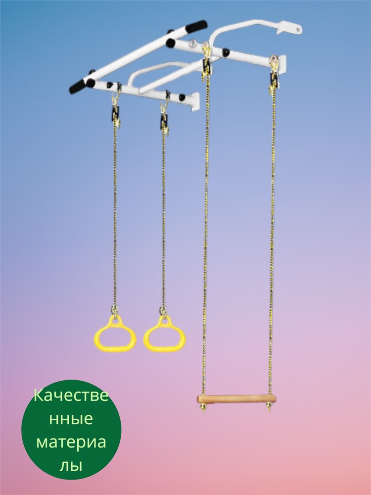 В комплект турника входят кольца и трапеция, что позволяет разнообразить тренировки и сделать их еще более интересными и разнообразными.