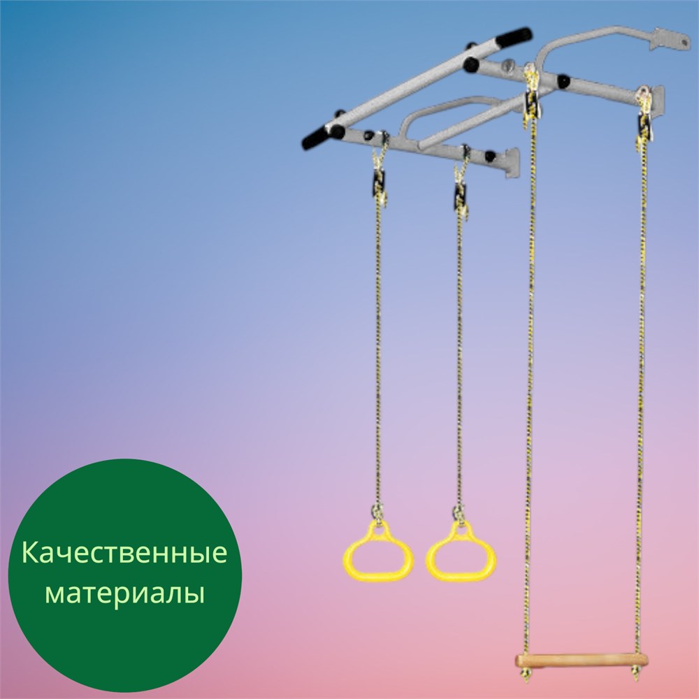 Комплектация турника включает кольца и трапецию, что позволяет разнообразить тренировки и сделать их более интересными и разнообразными.