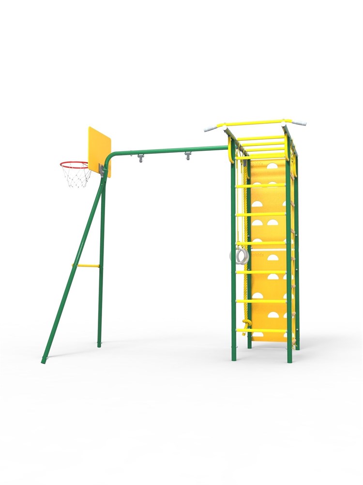 В комплекте с комплексом идет баскетбольное кольцо, что позволяет детям развивать свои навыки в баскетболе.