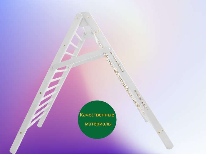 Лестница-сетка выполнена из натурального дерева, что обеспечивает безопасность и долговечность изделия. Все края деталей немного скруглены, что делает использование комплекса еще более безопасным.