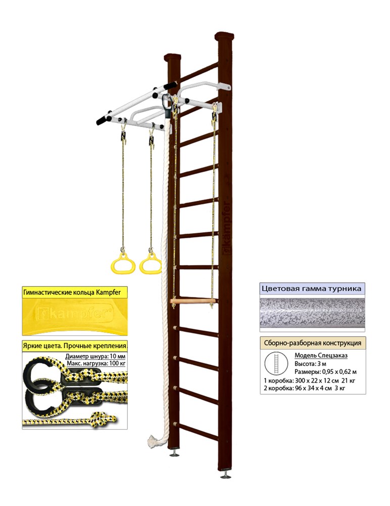 Шведская стенка Kampfer Helena Ceiling (№5 Шоколадный Высота 3 м белый антик турник)